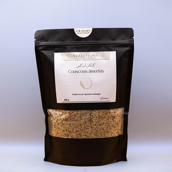 Découvrez notre couscous amerkis multi-céréales, un classique de la région de Chefchaouen, certifié par l'ONSSA. Ce couscous traditionnel, riche en fibres et en nutriments, associe plusieurs céréales pour offrir une texture unique et un goût authentique. Parfait pour enrichir vos plats ou explorer de nouvelles recettes, il ajoute une touche de tradition et de bien-être à chaque bouchée. Commandez dès aujourd'hui pour savourer ce couscous nourrissant et plein de saveurs !