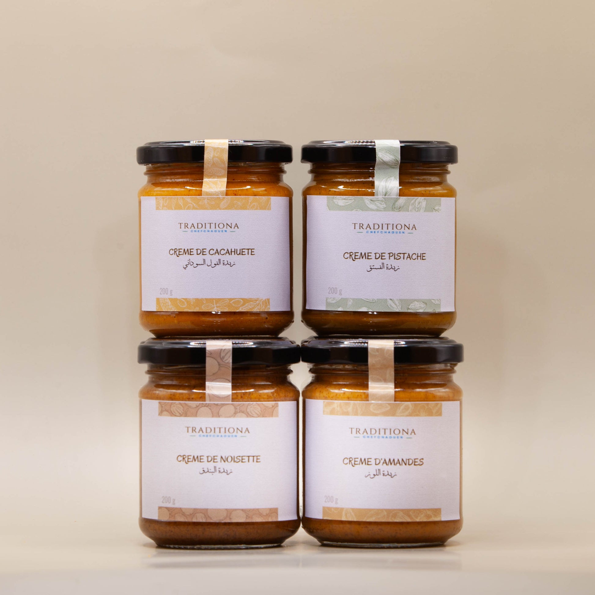 Savourez l'authenticité avec notre pack Délicieux, composé de quatre délicieuses crèmes : pistache, amande, cacahuète, et noisette. Chaque crème est 100% naturelle, sans sel, sans sucre ajouté, ni huile, offrant une pureté totale sans aucun additif. Préparé avec soin par les producteurs locaux de Chefchaouen. Profitez de cette expérience gustative unique, saine et respectueuse des traditions.