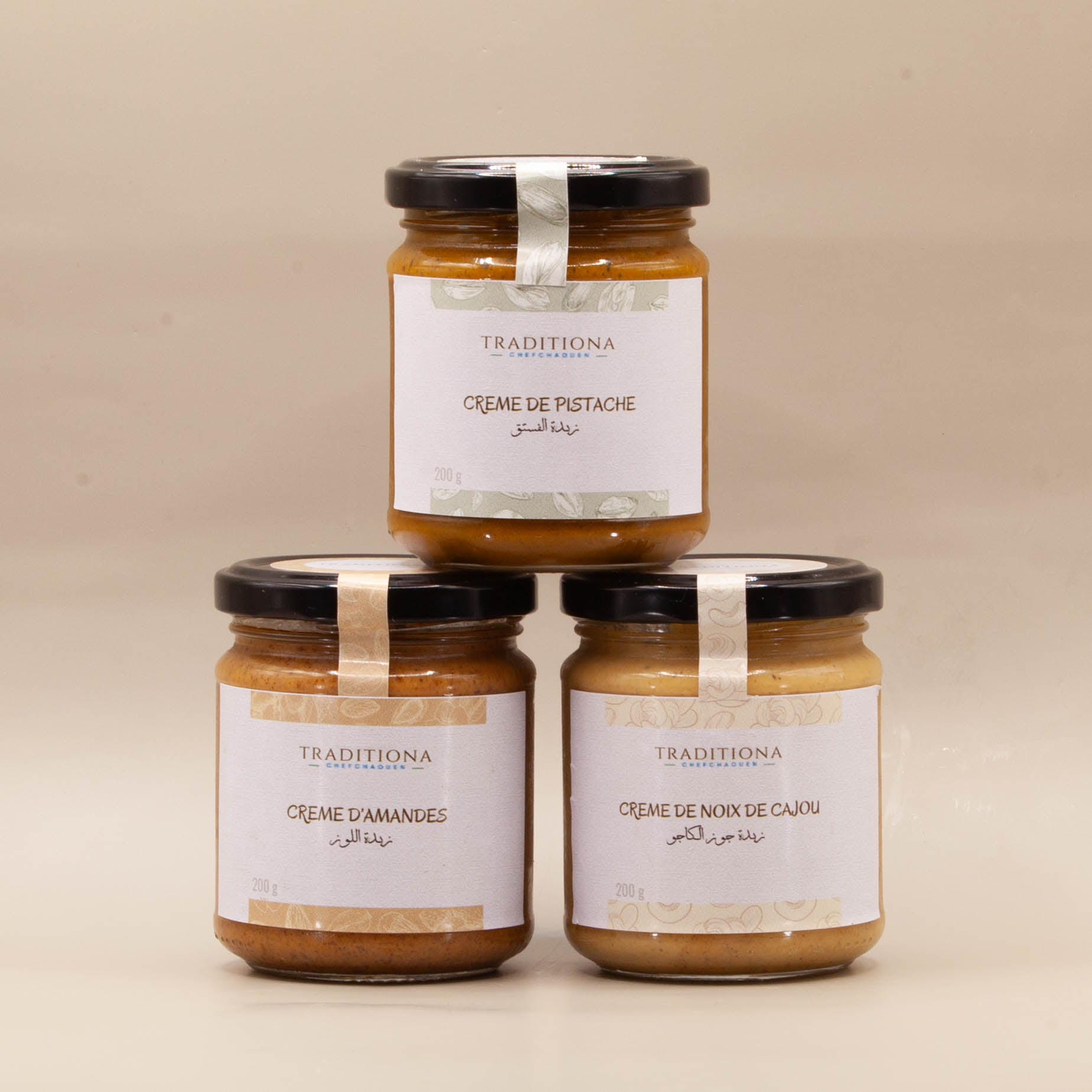 Découvrez le pack "Pure", un trio d'exception qui réunit nos beurres de pistache, noix de cajou, et d'amandes, tous 100% naturels, sans sel, sans sucre ajouté, sans huile, et sans aucun additif. Préparés avec soin dans la région de Chefchaouen, ces beurres sont issus d'ingrédients bio de qualité supérieure, pour vous offrir une texture onctueuse et un goût authentique. Idéal pour vos petits-déjeuners, collations ou recettes gourmandes, le pack "Pure" est un choix sain qui allie plaisir et nutrition. Succombez à la pureté de ces saveurs naturelles !