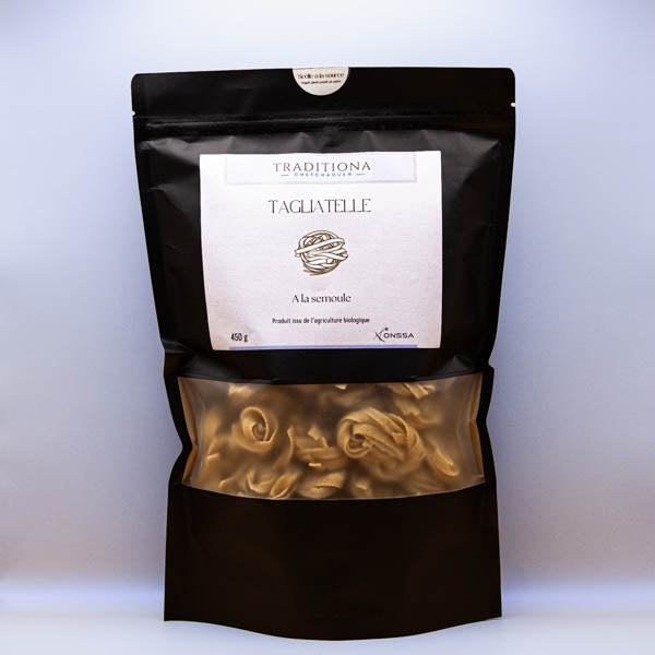 Découvrez nos tagliatelles à la semoule, fabriquées avec soin à partir de semoule de haute qualité et certifiées par l'ONSSA. Leur texture légère et leur saveur délicate font de ces tagliatelles un choix parfait pour accompagner vos sauces préférées ou pour créer des plats délicieux et raffinés. Riche en glucides complexes, elles constituent un excellent choix pour des repas nourrissants. Commandez dès aujourd’hui pour savourer cette qualité exceptionnelle dans vos plats de pâtes !