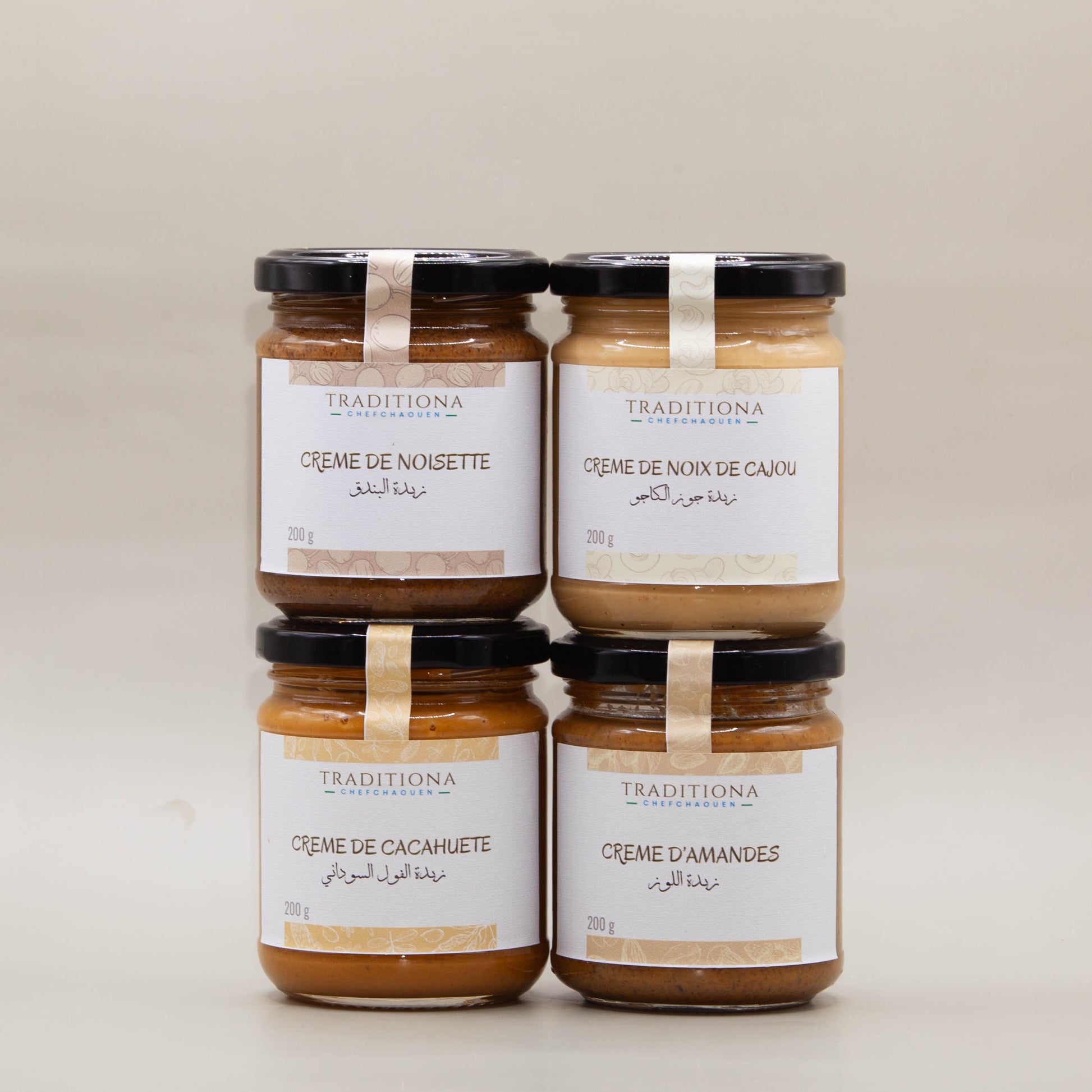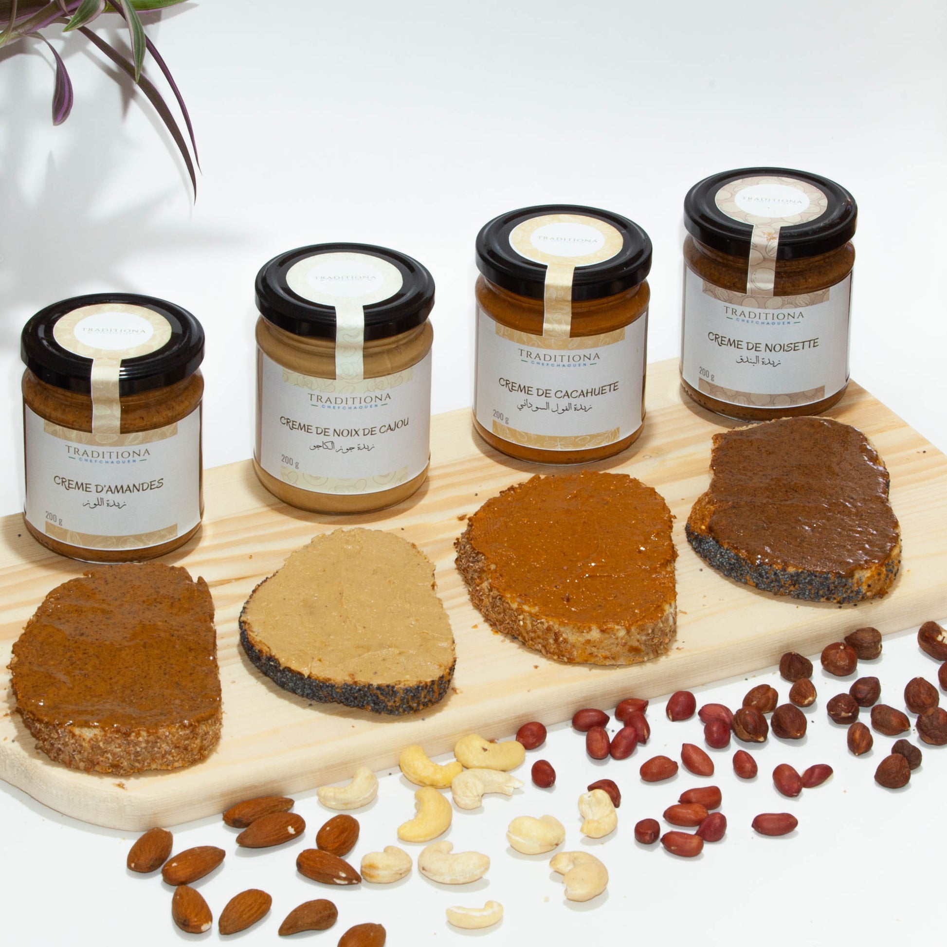 Découvrez un assortiment exceptionnel de crèmes 100 % naturelles, sans sucre ajouté ni huile de palme. Ce pack réunit quatre trésors gourmands, chacun riche en saveurs et bienfaits nutritionnels :