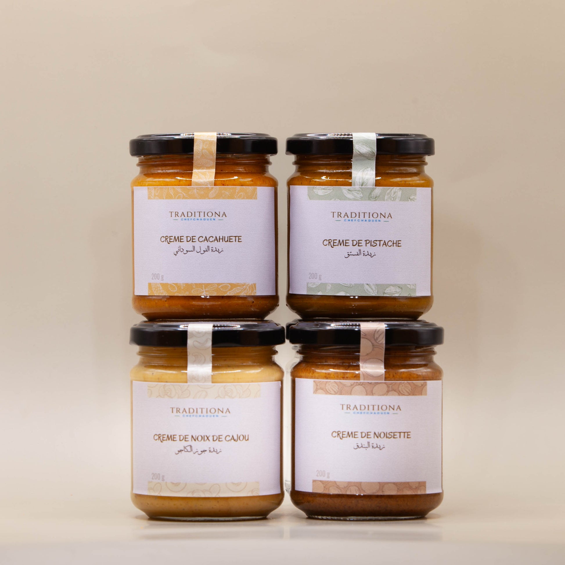 Découvrez notre pack Crémeux préparé à Chefchaouen, composé de quatre crèmes 100% naturelles : crème de pistache, crème de noix de cajou, crème de noisette, et crème de cacahuète. Sans sel, sans sucre ajouté, ni huile, ces crèmes sont confectionnées sans aucun additif, offrant une pureté et une authenticité uniques. Fabriquées artisanalement, elles reflètent le savoir-faire des producteurs de Chefchaouen, garantissant une qualité irréprochable. Dégustez des saveurs naturelles tout en soutenant les producteurs locaux et en respectant votre bien-être.