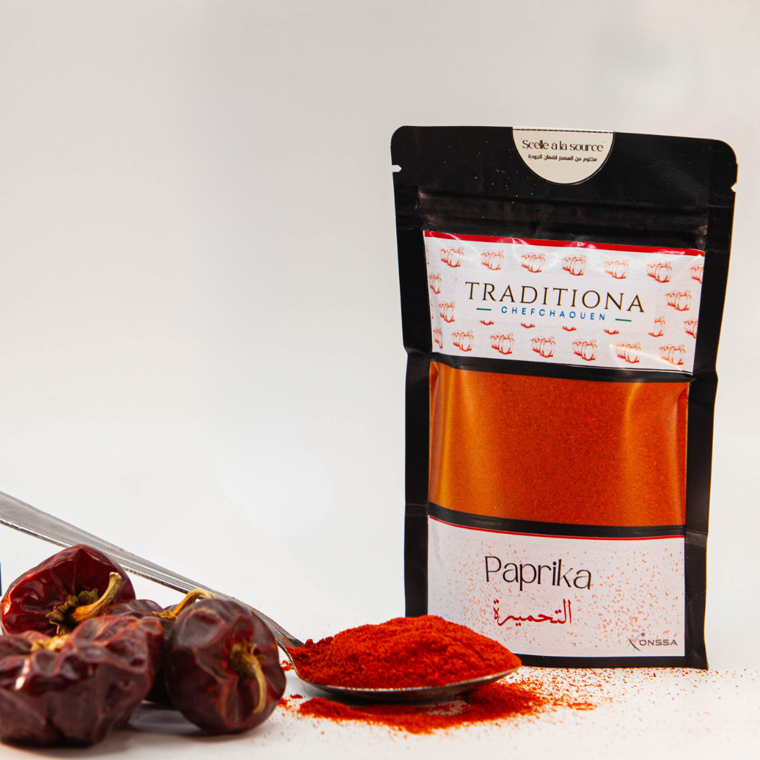 Découvrez notre paprika, fabriqué à partir de poivrons bio cultivés avec soin dans la région de Chefchaouen. Avec sa couleur vive et son goût riche, ce paprika est parfait pour ajouter une touche de chaleur et de saveur à vos plats. Chaque étape de sa préparation, du séchage à la mouture, est réalisée avec attention pour préserver toute la qualité et la fraîcheur des poivrons. Ajoutez ce paprika à vos recettes pour une explosion de saveur authentique. Commandez dès aujourd'hui et enrichissez vos plats avec cette épice exceptionnelle !